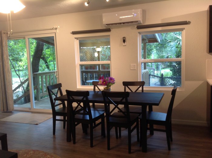 Our Cottage RentalsThese aren't your run-of-the-mill camping cabins! Cottages are comfortable, nicely decorated, and sleep from 2 - 6 persons. All cottages have cable TV, Wi-Fi, air conditioning and heat, and feature laminate flooring throughout. All cottages have bathrooms, kitchens, tableware, silverware, pots and pans, cooking utensils, coffee maker, and toaster as well as stove/oven, microwave, and refrigerator with freezer compartment. All cottages have a fire ring except Eagle’s Nest. Purchase firewood at the check-in office. No outside firewood allowed. There are also charcoal grills and a sitting area outside at ground level. Please Bring Your Own Bed Linens and TowelsThe 2 bedroom Eagle’s Nest cottage also has washer/dryer and dishwasher. Newly remodeled Grey Heron, River’s Nest, and Beaver’s Den sleep up to 6 people. Only one vehicle allowed to park at each cottage. Additional vehicles and boat trailers must park outside the gate in designated area near the check-in office. |