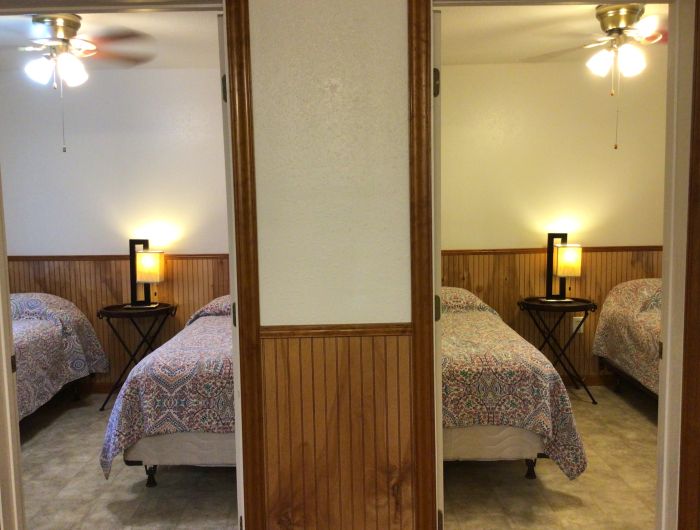 EAGLE'S NEST Eagle's Nest has 2 bedrooms, one with 2 twin beds, and one with a queen size bed. There is no fire ring, |